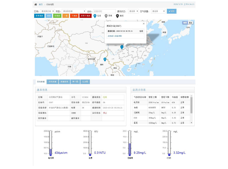 4. 設(shè)備地圖:各個(gè)監(jiān)測(cè)數(shù)據(jù)和儀器信息通過(guò)地圖實(shí)時(shí);