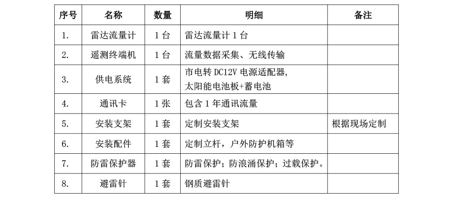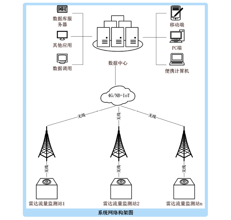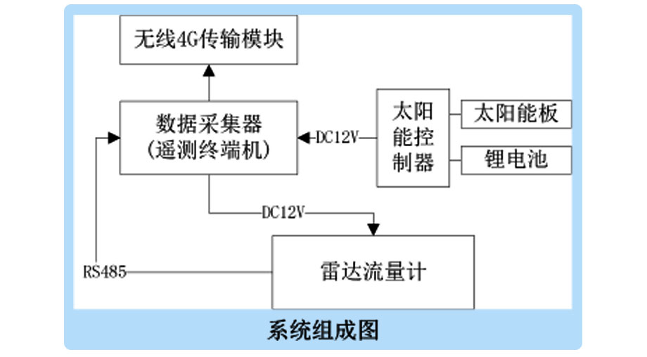 雷達流量監測系統是以流量監測儀器為核心,運用現代傳感技術、自動測量、自動控制技術、計算機應用技術和通訊網絡等組成的綜合性在線自動監測系統。本系統主要由:雷達流量傳感器、數據處理主機、數據傳輸系統、應用層等部分組成。傳感部分是信息化的基礎,主要實現城區水雨情采集和排水過程監測監控;測量主機主要實現站點編輯、斷面輸入、各類數據匯集、存儲、管理和計算;遠程傳輸系統主要是通過RTU所進行的數據傳輸功能,對所關心的數據進行上傳至數據中心;應用層在信息資源中心的基礎上提供綜合信息服務、工程運行維護管理和信息展示等功能,為明渠流量信息化提供科學依據。
