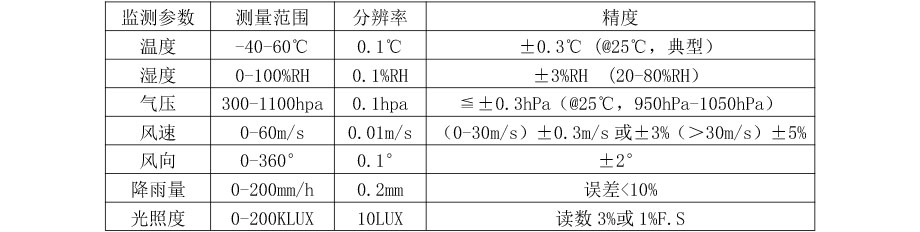 測量原理:風速風向(超聲波),雨量(光學)
