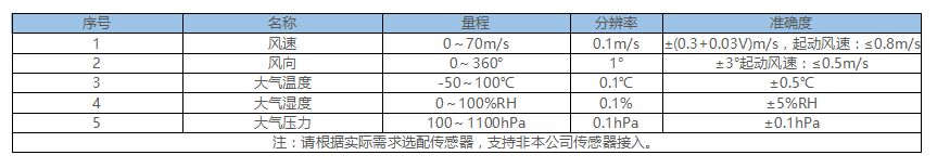 1.可配接大氣溫濕度、大氣壓力、風(fēng)速、風(fēng)向、等氣象要素;