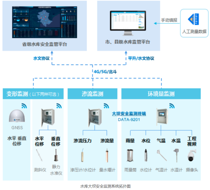 水庫大壩是攔洪蓄水和調節水流的水利工程建筑物,《國務院辦公廳關于切實加強水庫除險加固和運行管護工作的通知》(國辦發 [2021] 8號),以吸2021年度總河湖長會議,均要求加快建設水庫大壩安全監測設施,提升信息化管理能力,健全水庫大壩安全運行監測系統。水庫大壩安全監測項目主要包括滲壓滲流和壩體的位移、沉降和變形監測,監測范圍包括壩體、壩基,以吸影響工程安全的泄輸水建筑物和近壩岸坡等。